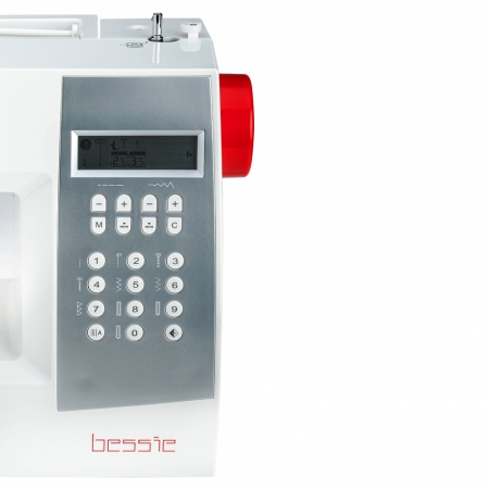 Op het grote display van de VERITAS Bessie worden alle steekinstellingen overzichtelijk weergegeven. De steeklengte kan worden ingesteld van 0 - 4,5 mm en de steekbreedte van van 0 - 7mm en vervolgens opgeslagen via de geheugenfunctie. Comfortabel naaien, zelfs zonder voetpedaal, is zonder problemen mogelijk met de VERITAS Bessie. Met behulp van de start/stop-knop kan de machine ook met de hand worden bediend. De automatische naaldinrijger en de volautomatische draadafsnijder voor boven- en onderdraad, evenals de naaiknop zorgen met één druk op de knop voor topresultaten.